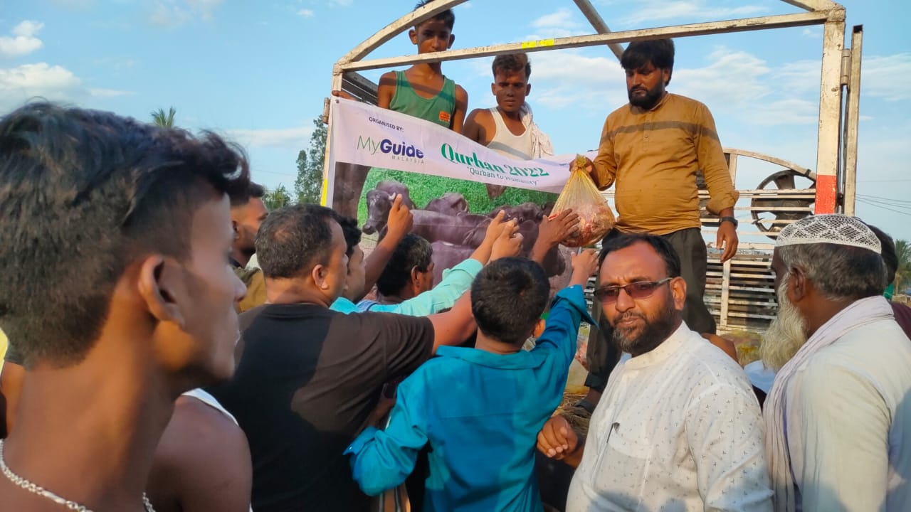 The recipients of the sacrificial meat are among the poor and also flood victims.